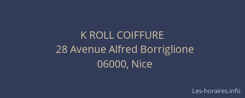 Voici les horaires de K ROLL COIFFURE situé à Nice,