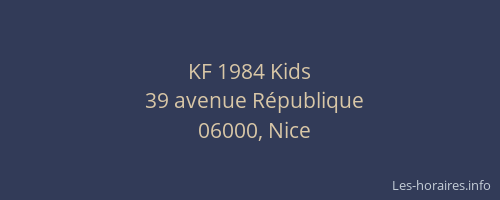 Voici les horaires de KF 1984 Kids situé à Nice,
