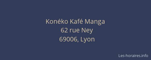 Voici les horaires de Konéko Kafé Manga situé à Lyon 6ème,