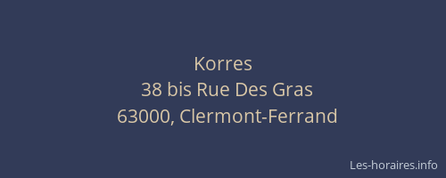 Voici les horaires de Korres situé à Clermont-Ferrand,