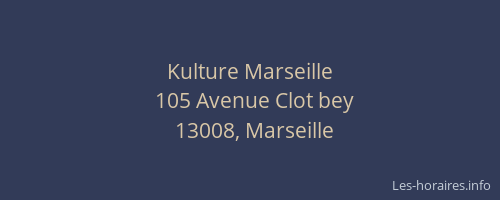 Voici les horaires de Kulture situé à Marseille 8ème,