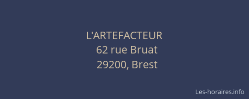 Vous pouvez renseigner les horaires L'ARTEFACTEUR situé à Brest,