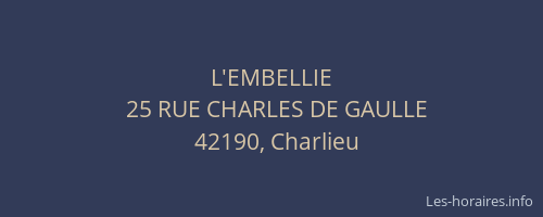 Voici les horaires de L'EMBELLIE situé à Charlieu,
