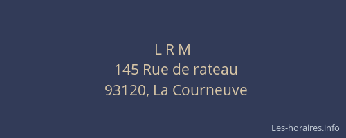 Voici les horaires de L R M situé à La Courneuve,