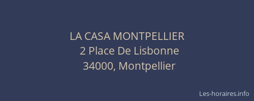 Voici les horaires de LA CASA MONTPELLIER situé à Montpellier,