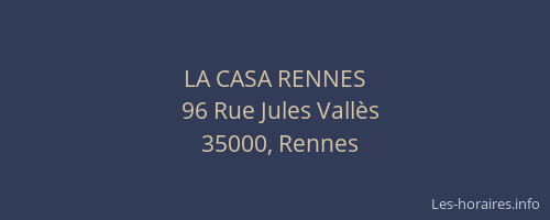 Voici les horaires de LA CASA RENNES situé à Rennes,