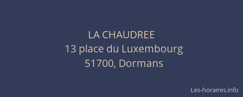 Voici les horaires de LA CHAUDREE situé à Dormans,