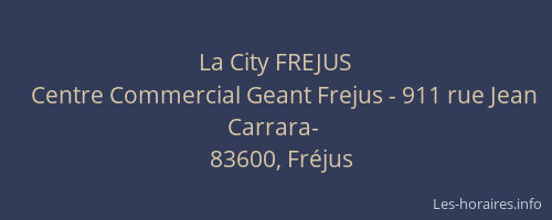 Voici les horaires de La City FREJUS situé à Fréjus,