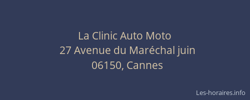 Voici les horaires de La Clinic Auto Moto situé à Cannes,