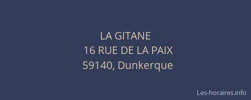 Voici les horaires de LA GITANE situé à Dunkerque,