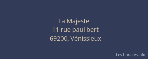 Voici les horaires de La Majeste situé à Vénissieux,
