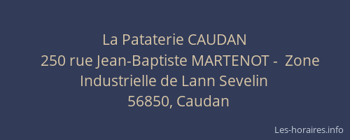 Voici les horaires de La Pataterie CAUDAN situé à Caudan,