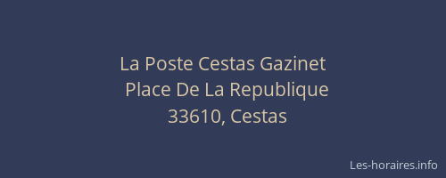 Voici les horaires de La Poste Gazinet situé à Cestas,