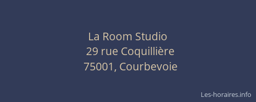 Voici les horaires de La Room Studio situé à Courbevoie,