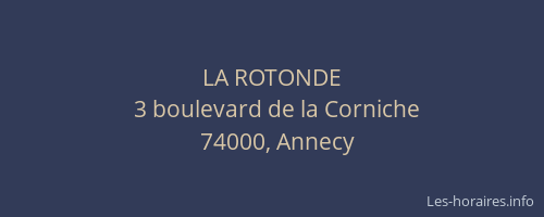 Voici les horaires de LA ROTONDE situé à Annecy,