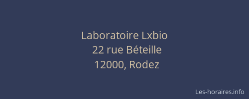 Voici les horaires de Laboratoire Lxbio situé à Rodez,