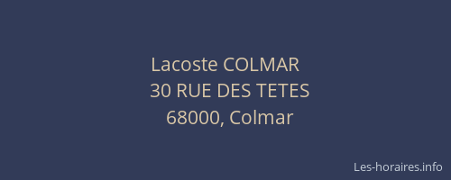 Voici les horaires de Lacoste COLMAR situé à Colmar,
