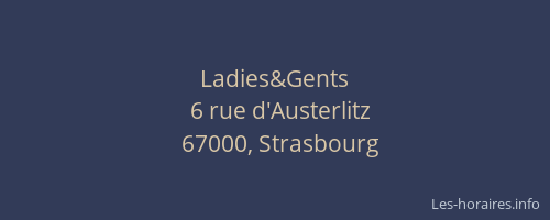 Voici les horaires de Ladies&Gents situé à Strasbourg,