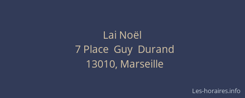 Voici les horaires de Lai Noël situé à Marseille 10ème,