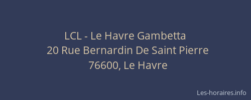Voici les horaires de LCL - Gambetta situé à Le Havre,
