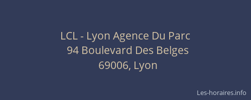 Voici les horaires de LCL - Agence Du Parc situé à Lyon,