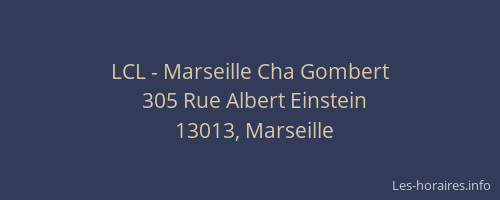 Voici les horaires de LCL - Cha Gombert situé à Marseille,