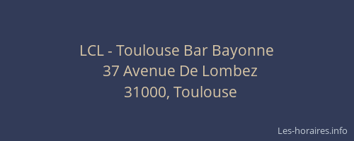 Voici les horaires de LCL - Bar Bayonne situé à Toulouse,