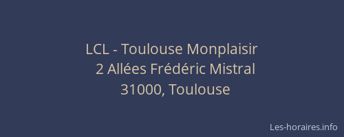 Voici les horaires de LCL - Monplaisir situé à Toulouse,