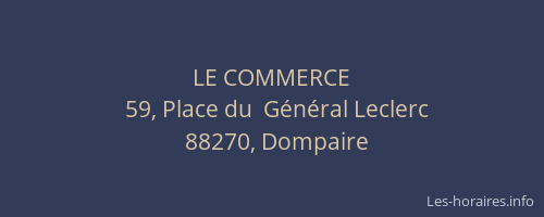Voici les horaires de LE COMMERCE situé à Dompaire,