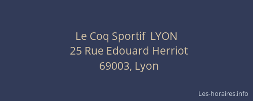 Voici les horaires de Le Coq Sportif LYON situé à Lyon 3ème,