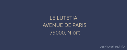 Voici les horaires de LE LUTETIA situé à Niort,