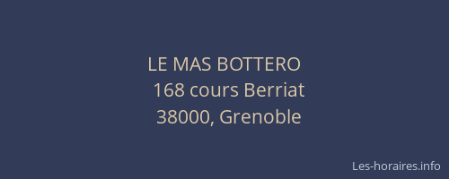 Voici les horaires de LE MAS BOTTERO situé à Grenoble,
