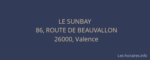 Voici les horaires de LE SUNBAY situé à Valence,