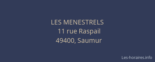 Voici les horaires de LES MENESTRELS situé à Saumur,