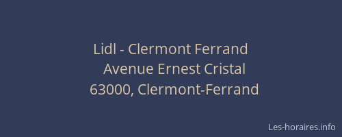 Voici les horaires de Lidl - Clermont Ferrand situé à Clermont-Ferrand,
