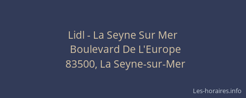 Voici les horaires de Lidl - La Seyne Sur Mer situé à La Seyne-sur-Mer,