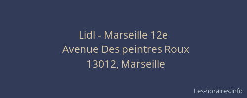 Voici les horaires de Lidl - 12e situé à Marseille,