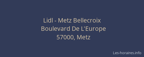 Voici les horaires de Lidl - Bellecroix situé à Metz,