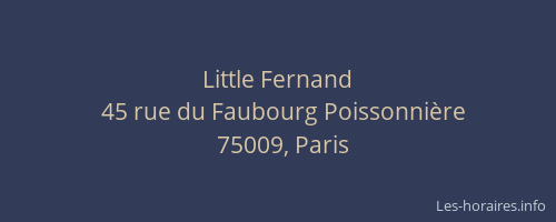 Voici les horaires de Little Fernand situé à Paris 9ème,