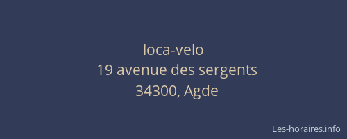Voici les horaires de loca-velo situé à Agde,