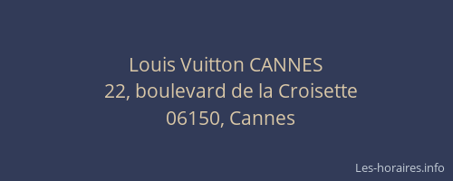 Voici les horaires de Louis Vuitton CANNES situé à Cannes,
