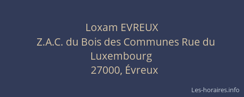 Voici les horaires de Loxam EVREUX situé à Évreux,