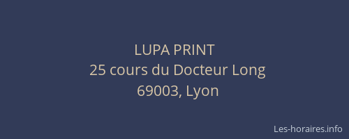 Voici les horaires de LUPA PRINT situé à Lyon 3ème,