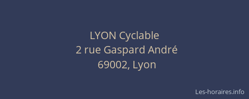 Voici les horaires de LYON Cyclable situé à Lyon 2ème,