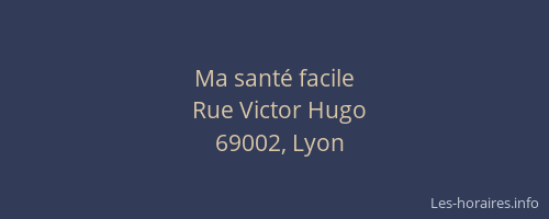 Voici les horaires de Ma santé facile situé à Lyon 2ème,