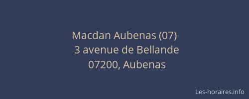 Voici les horaires de Macdan (07) situé à Aubenas,