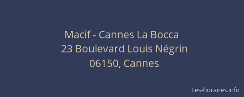 Voici les horaires de Macif - La Bocca situé à Cannes,