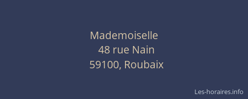 Vous pouvez renseigner les horaires Mademoiselle situé à Roubaix,