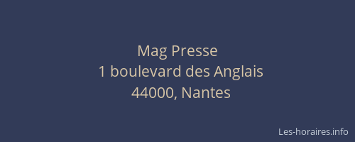Voici les horaires de Mag Presse situé à Nantes,