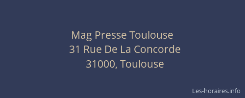 Voici les horaires de Mag Presse situé à Toulouse,